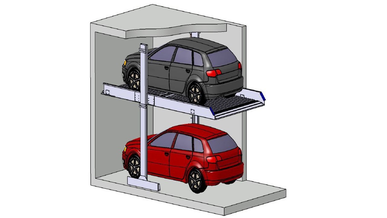 A stack parker is the perfect solution for implementing a parking space with a low ceiling height or short depth. Depending on the model, two to six cars are placed on the mechanical parking system. With a parking space load of 2000 to 2600kg, most cars can be easily parked.
